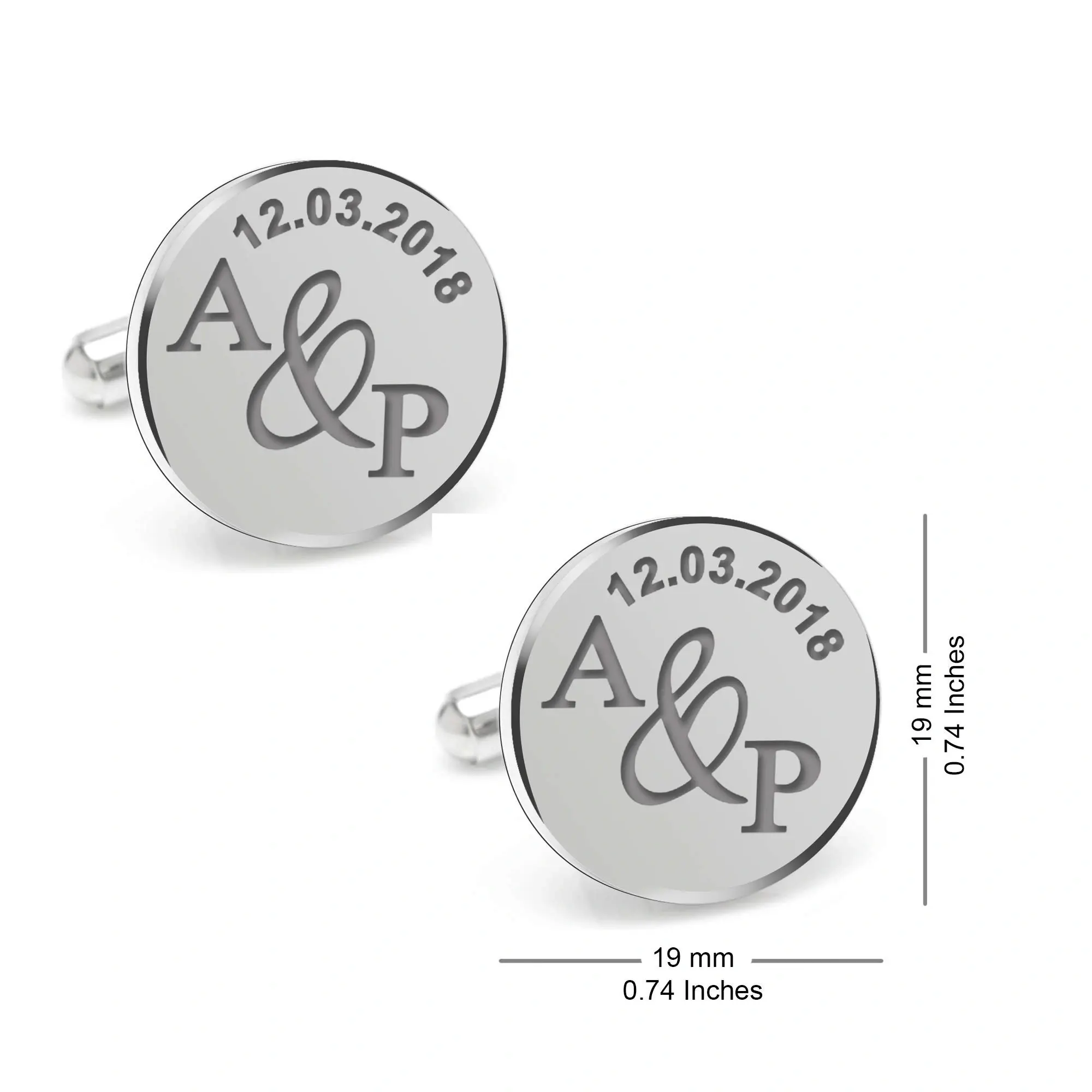 Mark a lifetime milestone with profound elegance. These classic round cufflinks, crafted in polished silver, are designed to honor a significant and personal moment. The centerpiece is a beautifully engraved monogram featuring the elegant, intertwined script initials “A & P”, representing a cherished union or partnership. Encircling the initials is the momentous date “12.03.2018”, forever etching the day in refined detail. The deep, crisp engraving creates a lasting contrast against the luminous metal, ensuring the personal significance is both tactile and visible.