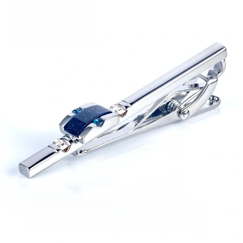 Elevate your formal ensemble with the serene elegance of our “Midnight Sky” Cufflinks and Tie Bar Set. This perfectly coordinated collection features a pair of cufflinks and a matching tie bar, all crafted with a sleek rectangular silhouette in a cool, polished silver-tone metal. The focal point of each piece is a deep, captivating blue stone, its surface dusted with fine, sparkling particles that mimic a starry night sky. The rich stone is elegantly framed and accentuated by a border of clear and sapphire-blue crystalline accents, adding a touch of refined brilliance. Designed for harmony and sophistication, this set is the definitive choice for adding a distinguished, celestial-inspired detail to a tuxedo or suit for galas, weddings, and important evenings. Discover the complete, polished look at Cufflinks Palace.